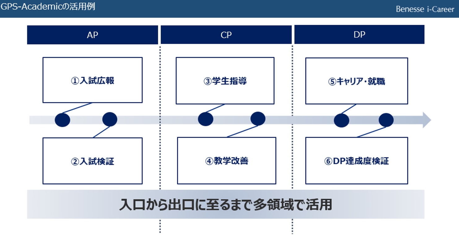 GPS-Academicは活用に重きを置いたテスト設計となっており、大学様における各領域において、豊富な活用事例がございます。