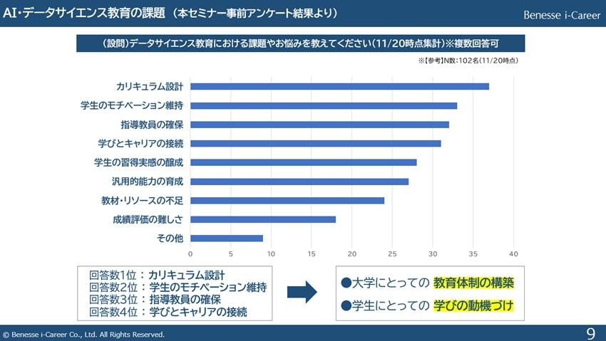 11月26日(水)に、特定非営利活動法人AI教育推進機構様と弊社との共催セミナー【大学と社会をつなぐ「データサイエンス教育」の在り方とは -データリテラシー実践力測定ツールの開発と活用事例のご紹介- 】を開催いたしました。