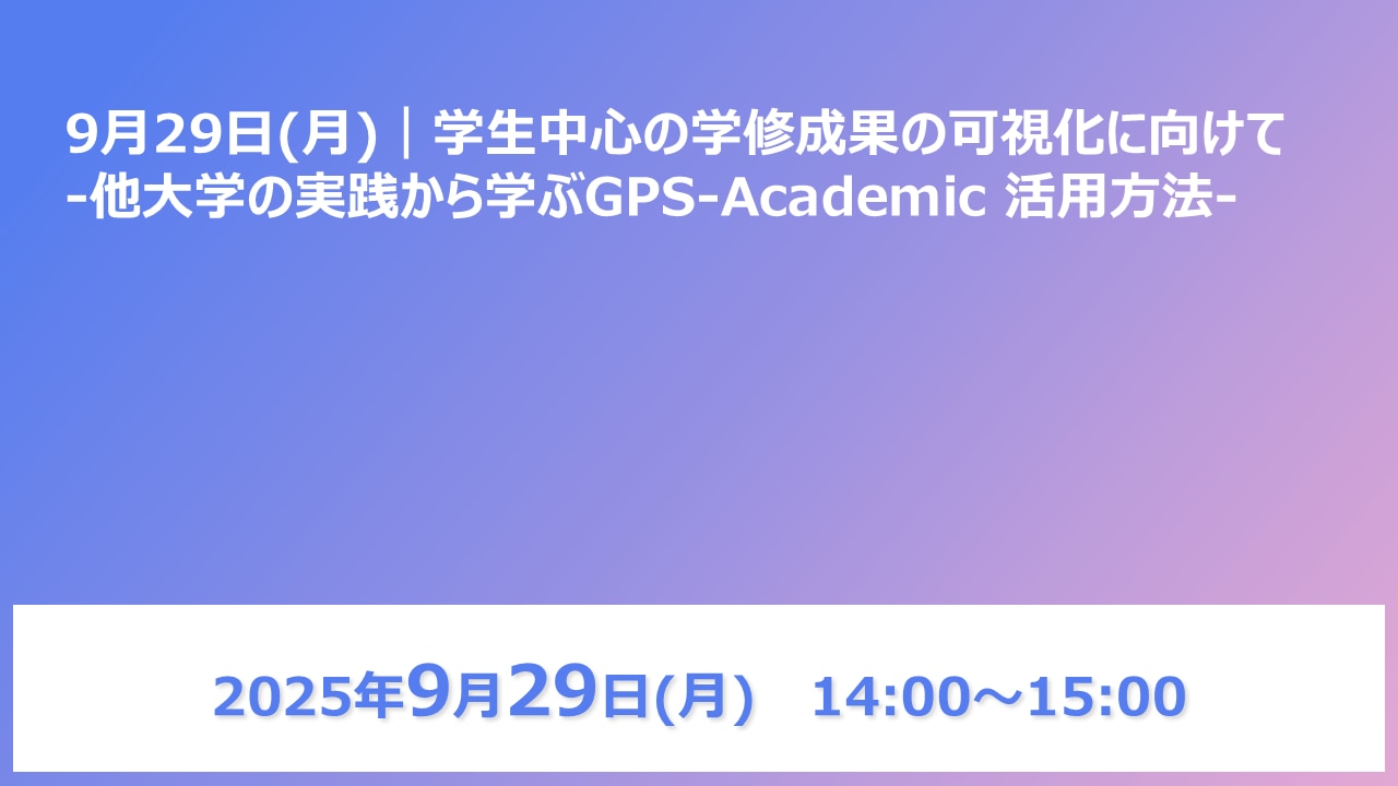 9月29日(月)|学生中心の学修成果の可視化に向けて-他大学の実践から学ぶGPS-Academic 活用方法-
